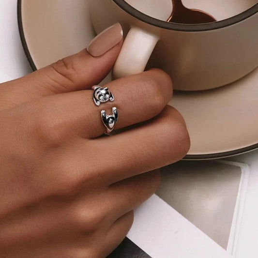Anello Panda in Argento 925 e Zirconi