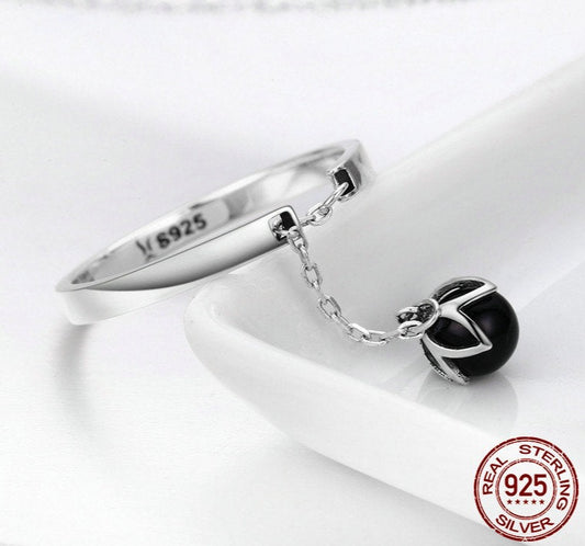 Anello Fiore di Loto in Argento 925 e Perla Nera