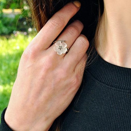 Anello Fiore Rosa in Argento 925 e Pietra Naturale