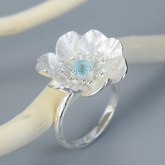 Anello Fiore di Loto in Argento 925 e Pietra Naturale