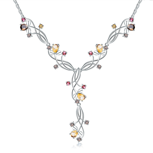 Collana Edera con Bacche in Argento 925 e Pietre Naturali