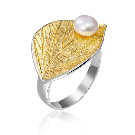 Anello foglia d'autunno in Argento 925 e Pietra Naturale