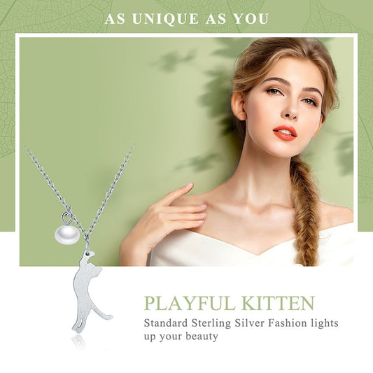 Collana Gatto in Argento 925 e Perla naturale