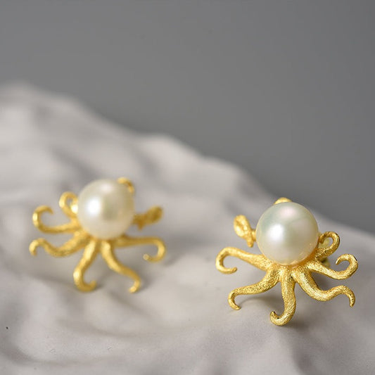 Orecchini Polpo in Argento 925 e Perla Naturale