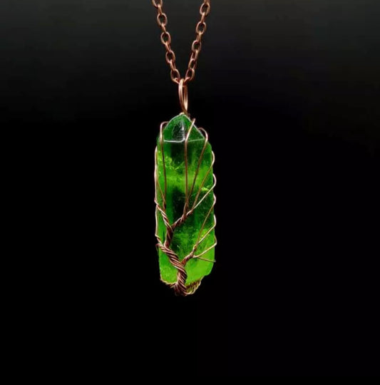 Collana Albero della Vita in Rame con Quarzo Verde Antico