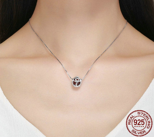 Collana Fiore Rosa in Argento 925 e Pietre Naturali