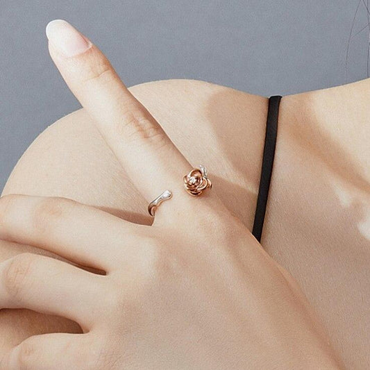 Anello Fiore Rosa in Argento 925, Oro Rosa e Zircone