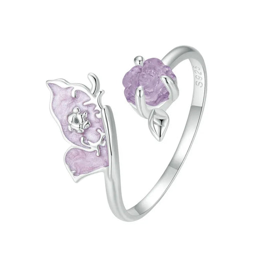 Pink Flower Ring in Antique Silver 925 and Zircon