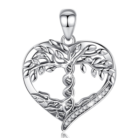 Tree of Life Heart Charm in 925 Silver and Zircons