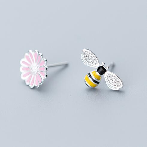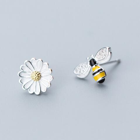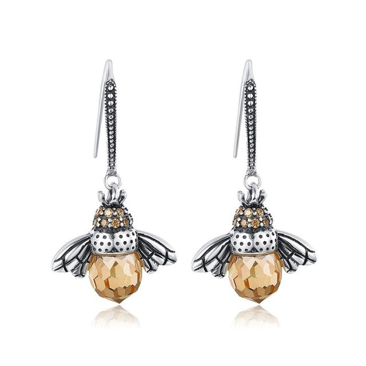 Bee Earrings in 925 Silver and Natural Nano Ceramic