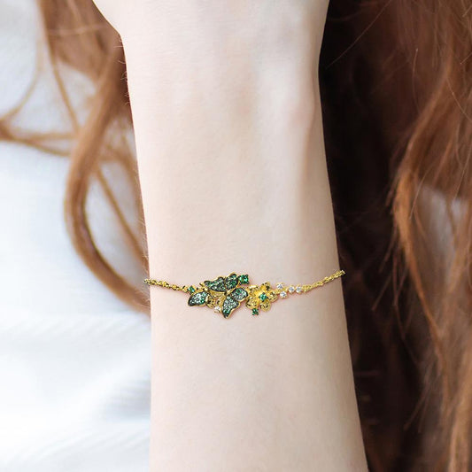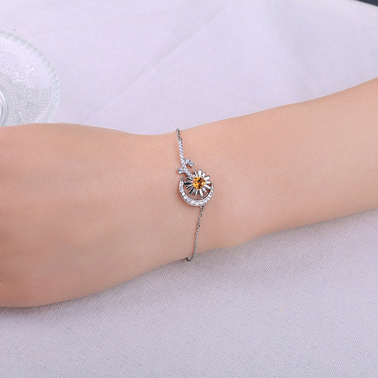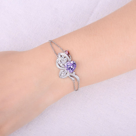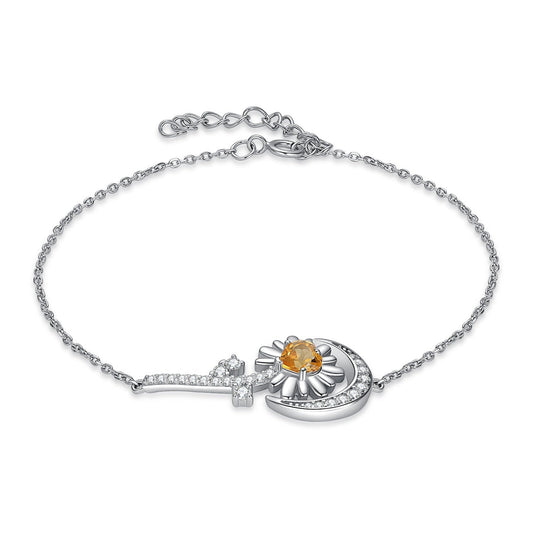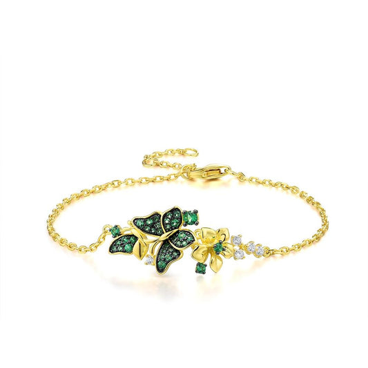 Skeleton Flower Bracelet in 925 Silver and Natural Crystal