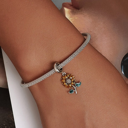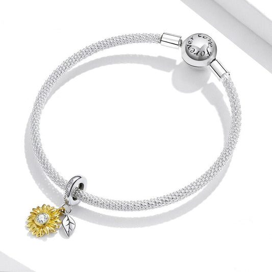 Sunflower Charm in 925 Silver, Gold and Zircon