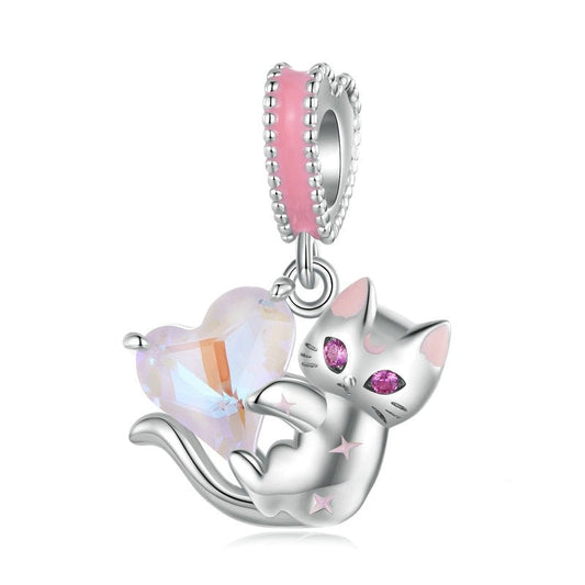 Butterfly Charm with Heart in 925 Silver and Zircons