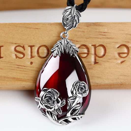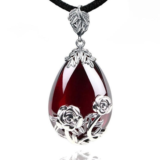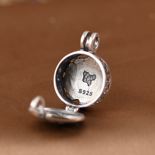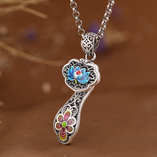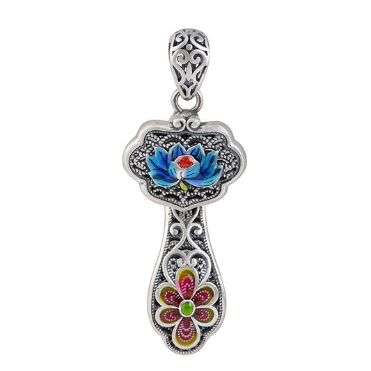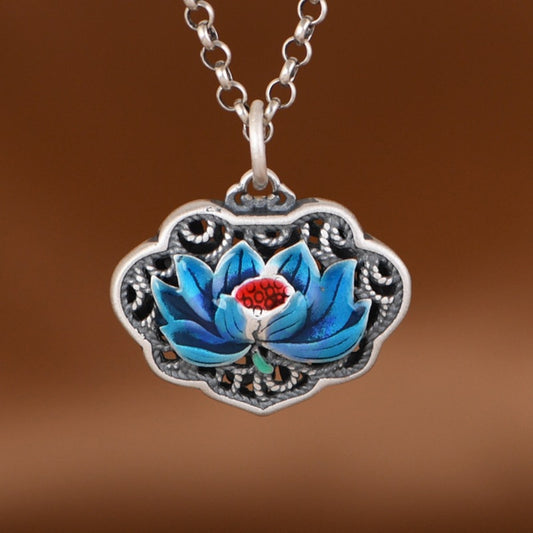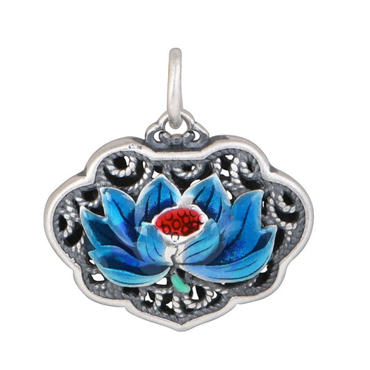 Lotus Flower Pendant in Antique 925 Silver and Chalcedony