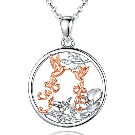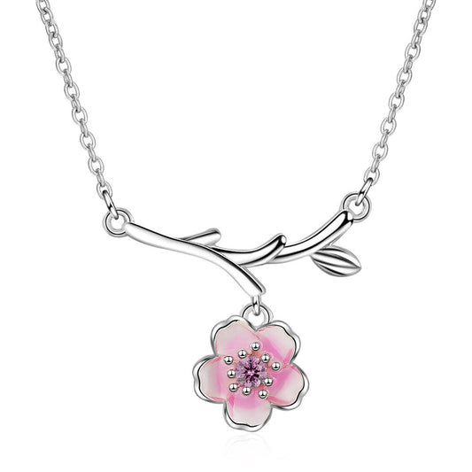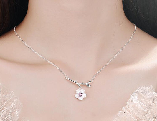 Rose Flower Necklace in 925 Silver and Natural Stones