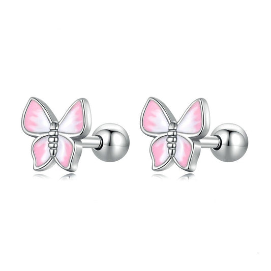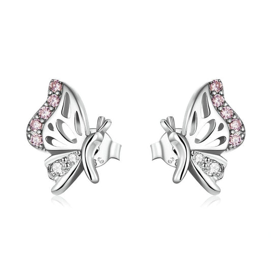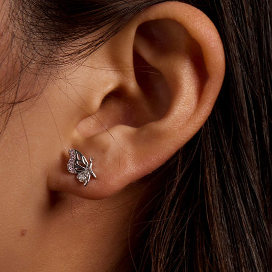 Butterfly Charm with Heart in 925 Silver and Zircons