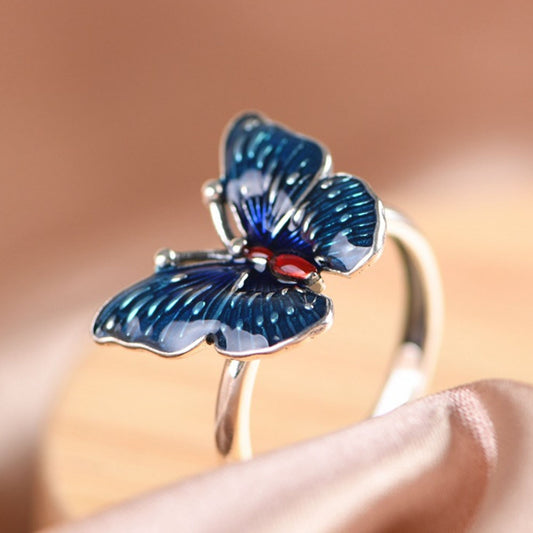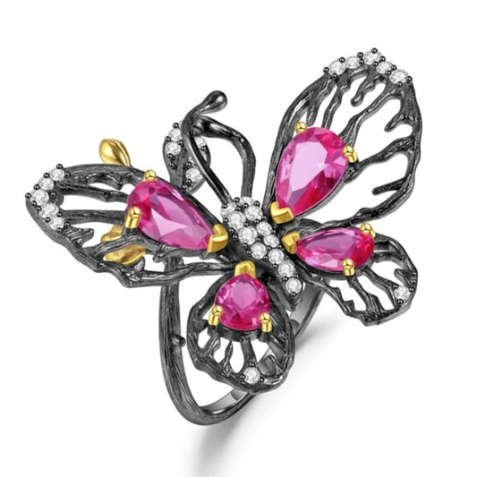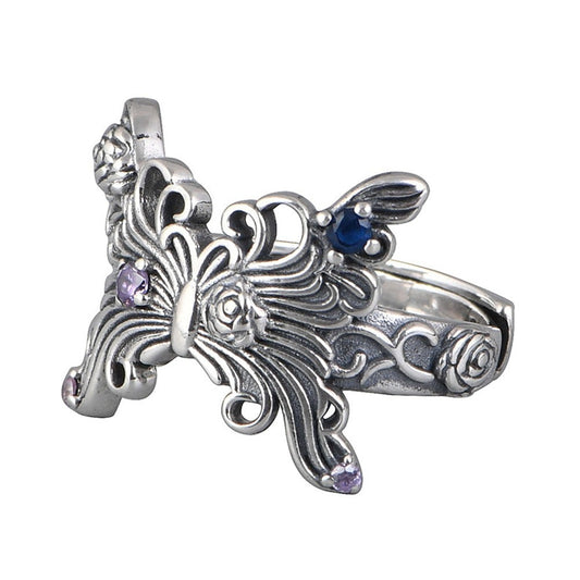 Butterfly Ring in 925 Silver and Aquamarine Stone