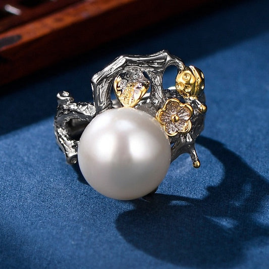 Daisy 925 antiqued silver ring with Chalcedony stone