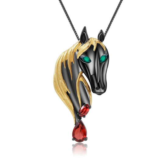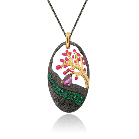 Birds on Branch Necklace in 925 Silver and Natural Stones