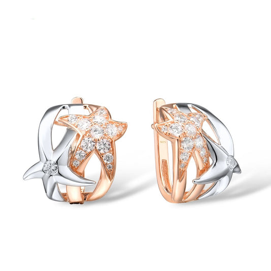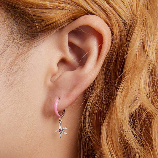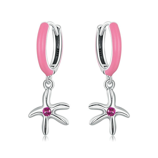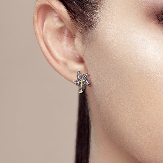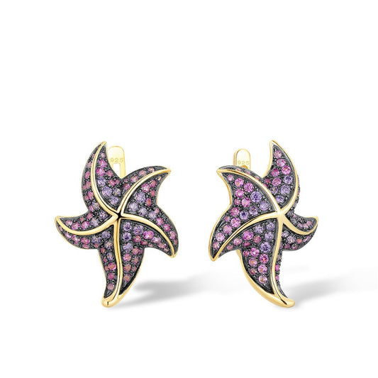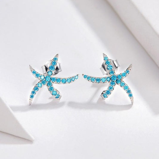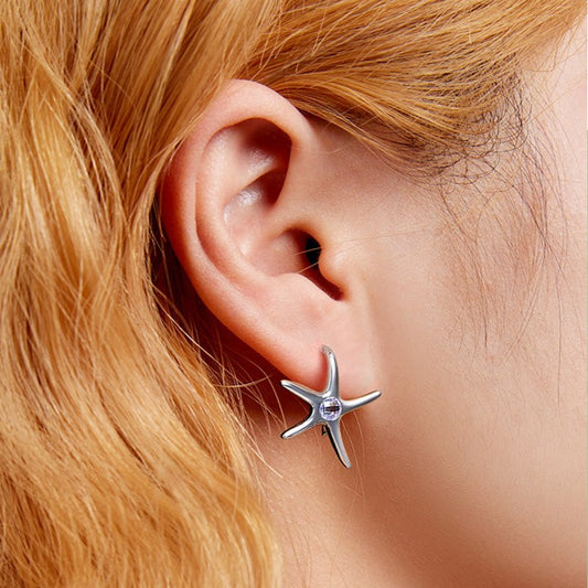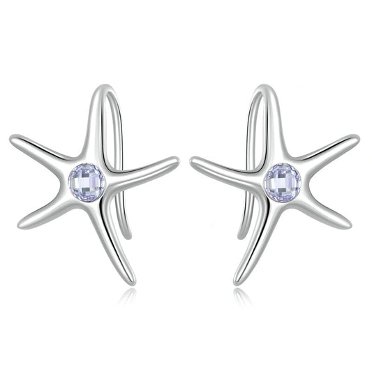 Starfish Earrings in 925 Silver and Zircons with Natural Pearl