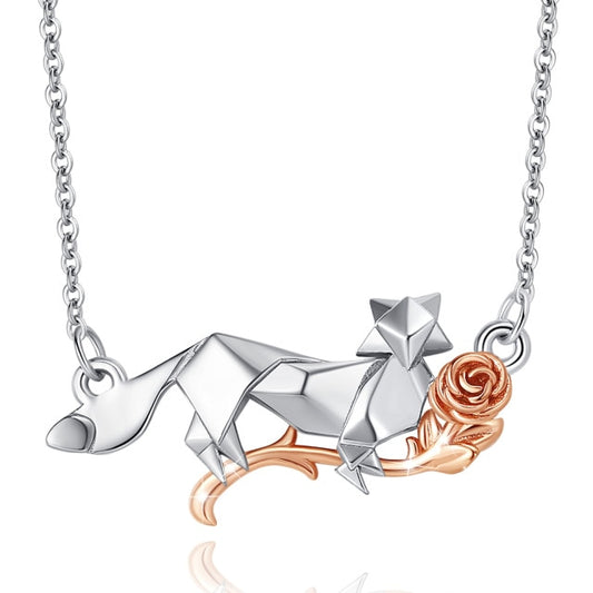 Red Fox Necklace in 925 Silver and Crystal