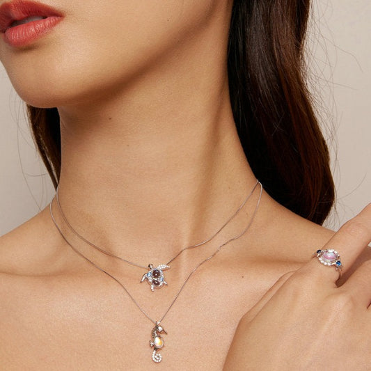 Turtle Necklace in 925 Silver, Zircons and Spinel