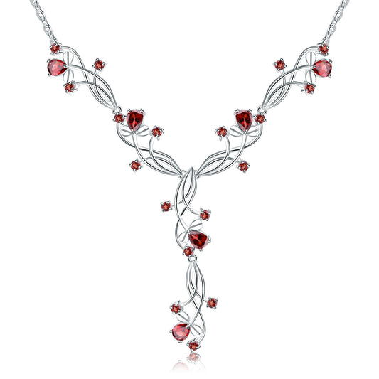 Ivy Necklace with Berries in 925 Silver and Natural Stones