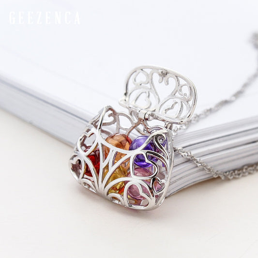 Rose Flower Necklace in 925 Silver and Natural Stones