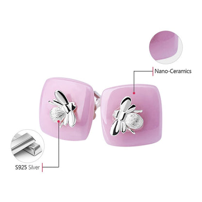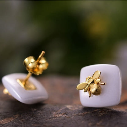 Bee Earrings in 925 Silver and Natural Nano Ceramic