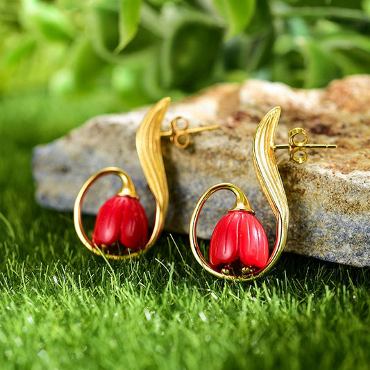 Orecchini Giglio della Valle in Argento 925 e Corallo Rosso