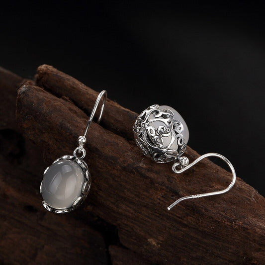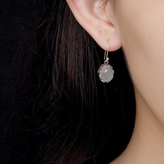 Orecchini Fiore di Loto in Argento Antico e Agata Naturale