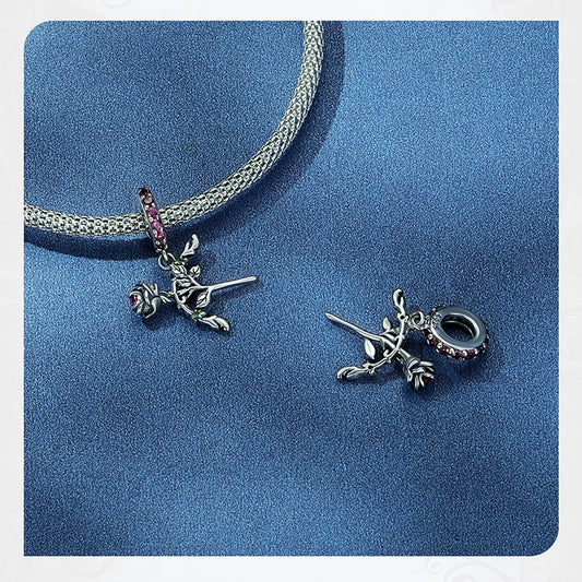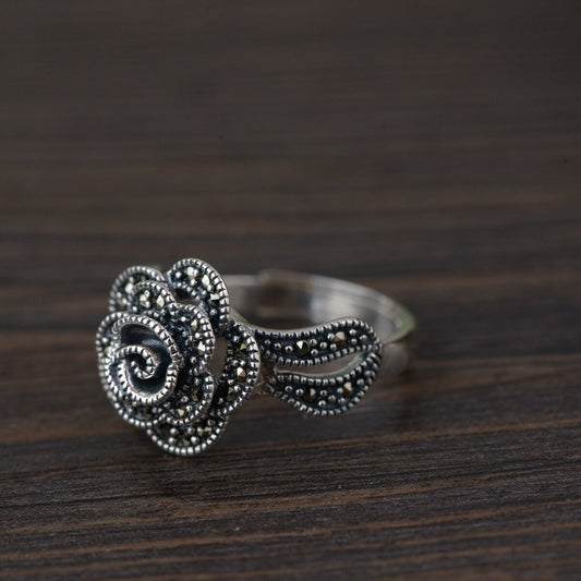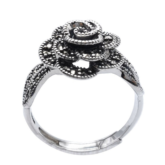 Anello Fiore Rosa in Argento Antico 925 e Zircone