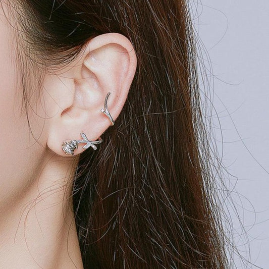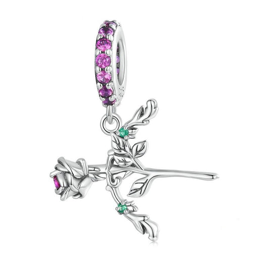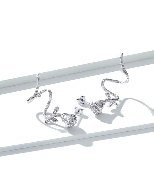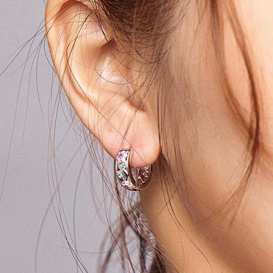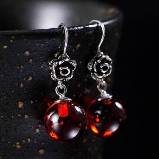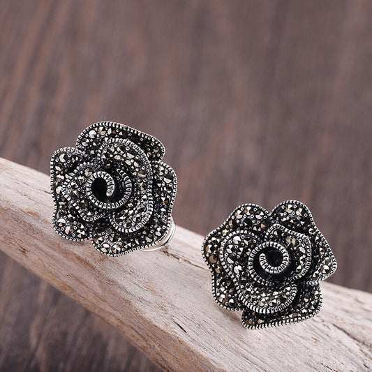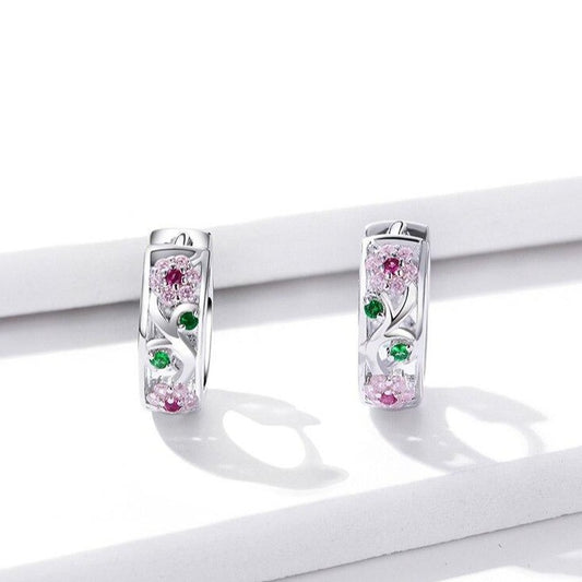 Orecchini Fiore Rosa in Argento 925 e Pietre Naturali