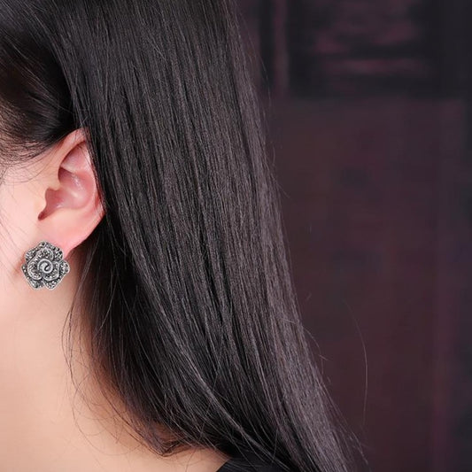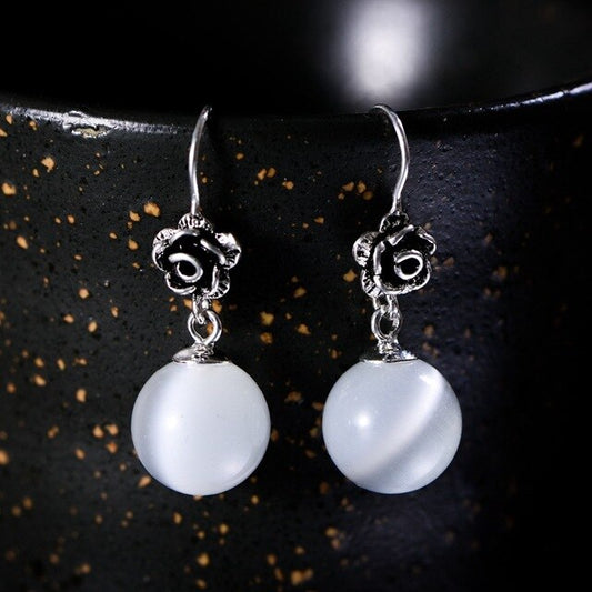 Orecchini Fiore Rosa in Argento 925 e Pietra Naturale