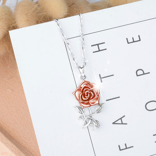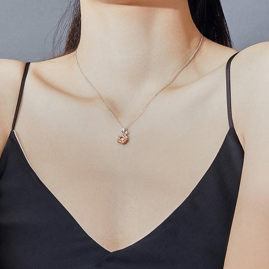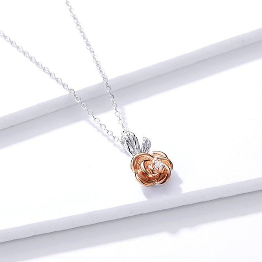 Collana Fiore Rosa in Argento 925 e Pietre Naturali