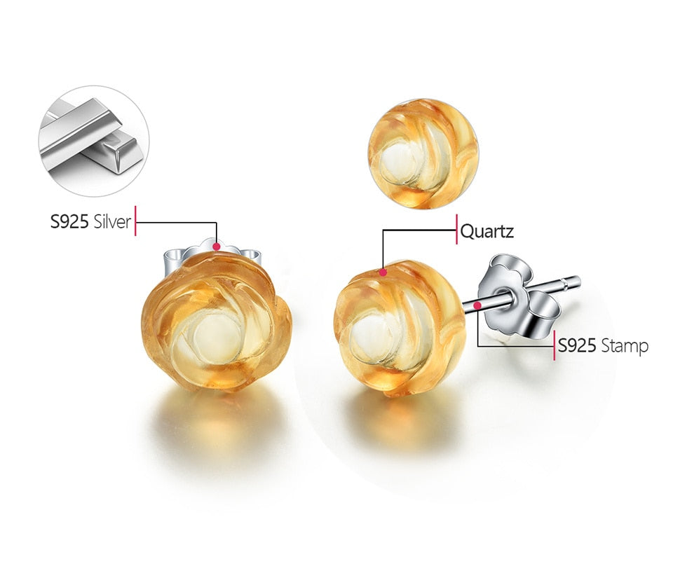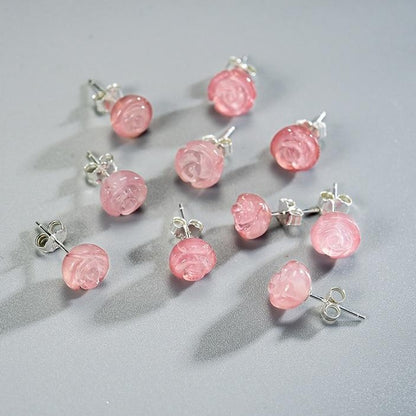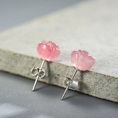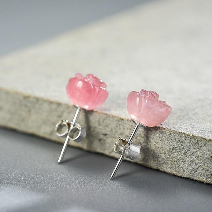 Orecchini Fiore Rosa in Argento 925 e Pietra Naturale