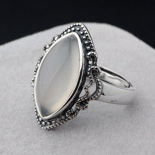 Pingente Flor de Lótus em Prata 925 Antiga e Calcedônia