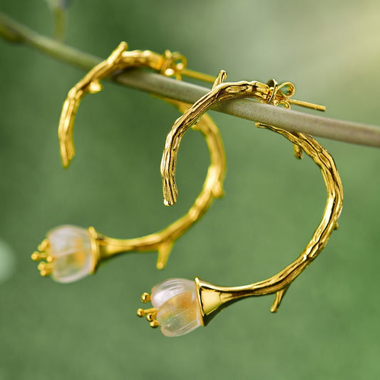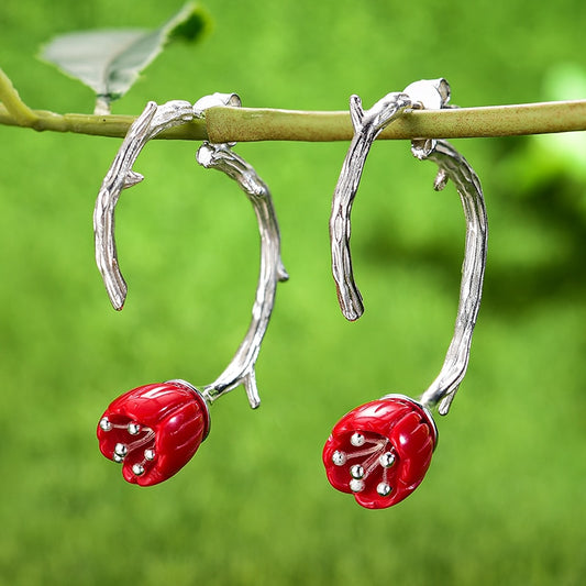 Brincos Lírio do Vale em Prata 925 e Coral Vermelho
