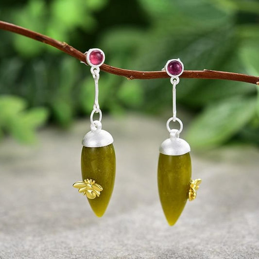 Brincos Abelha em Prata 925 e Pedra Natural