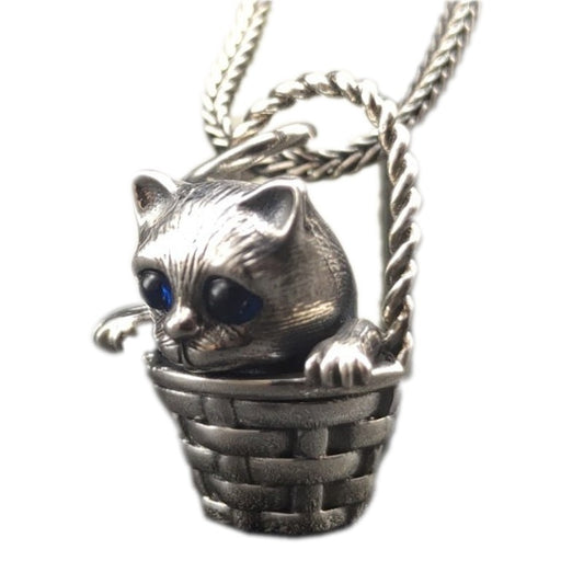 Pingente Gatinho no Cesto em Prata Antigo 925