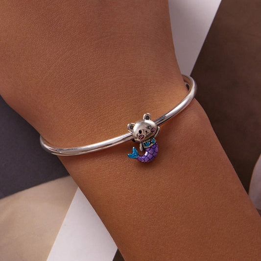 Amuleto Gato com Peixe em Prata 925 e Zircônias