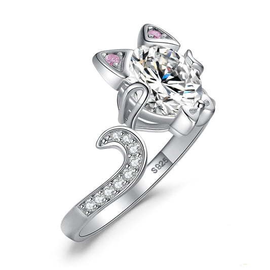 EsgotadoAnel Gato em Prata 925 e Zircônias