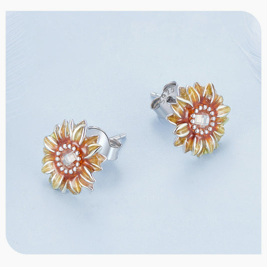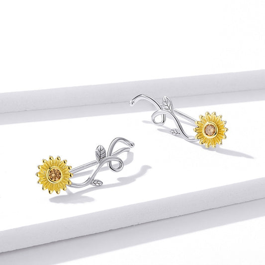 Brincos Girassol em Prata 925 e Ouro com Zircão