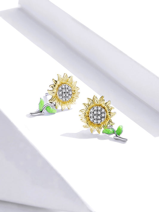Encanto Girassol em Prata 925, Ouro e Zircão