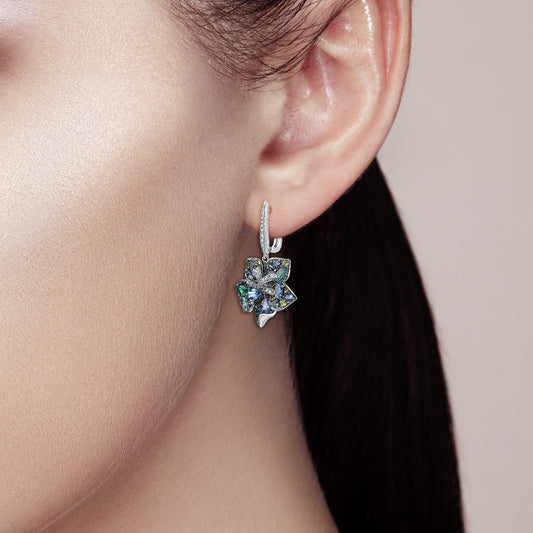 Brincos de flor esqueleto em prata 925 e cristal natural