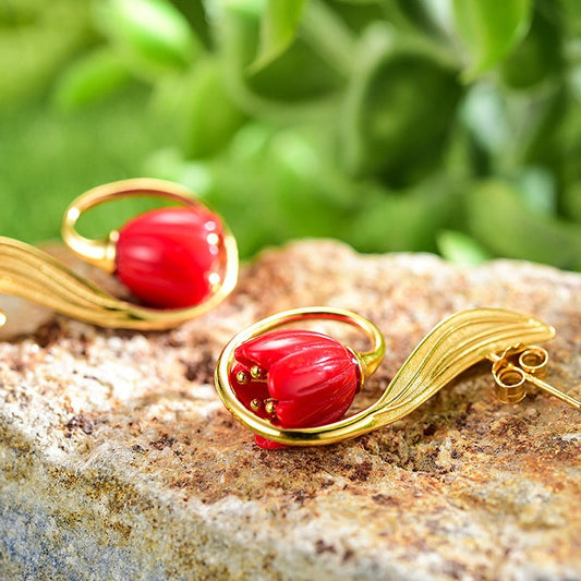 Brincos Lírio do Vale em Prata 925 e Coral Vermelho