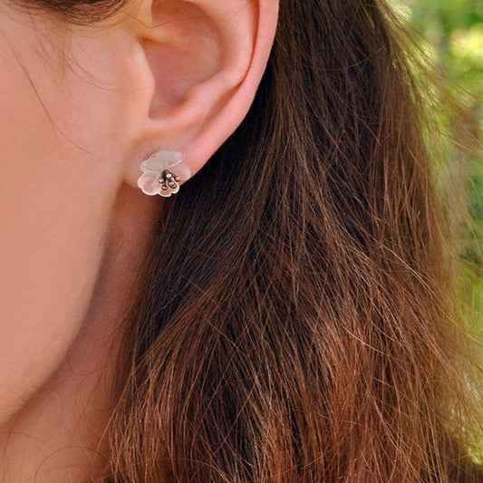 Brincos Flor Rosa em Prata 925 e Pedras Naturais