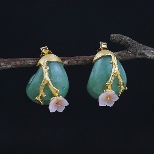Brincos Flor de Lótus em Prata Antiga e Ágata Natural