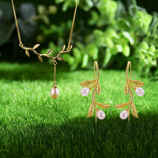 Conjunto Ramo de Oliveira em Prata 925 e Pérolas Naturais