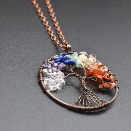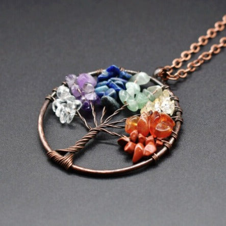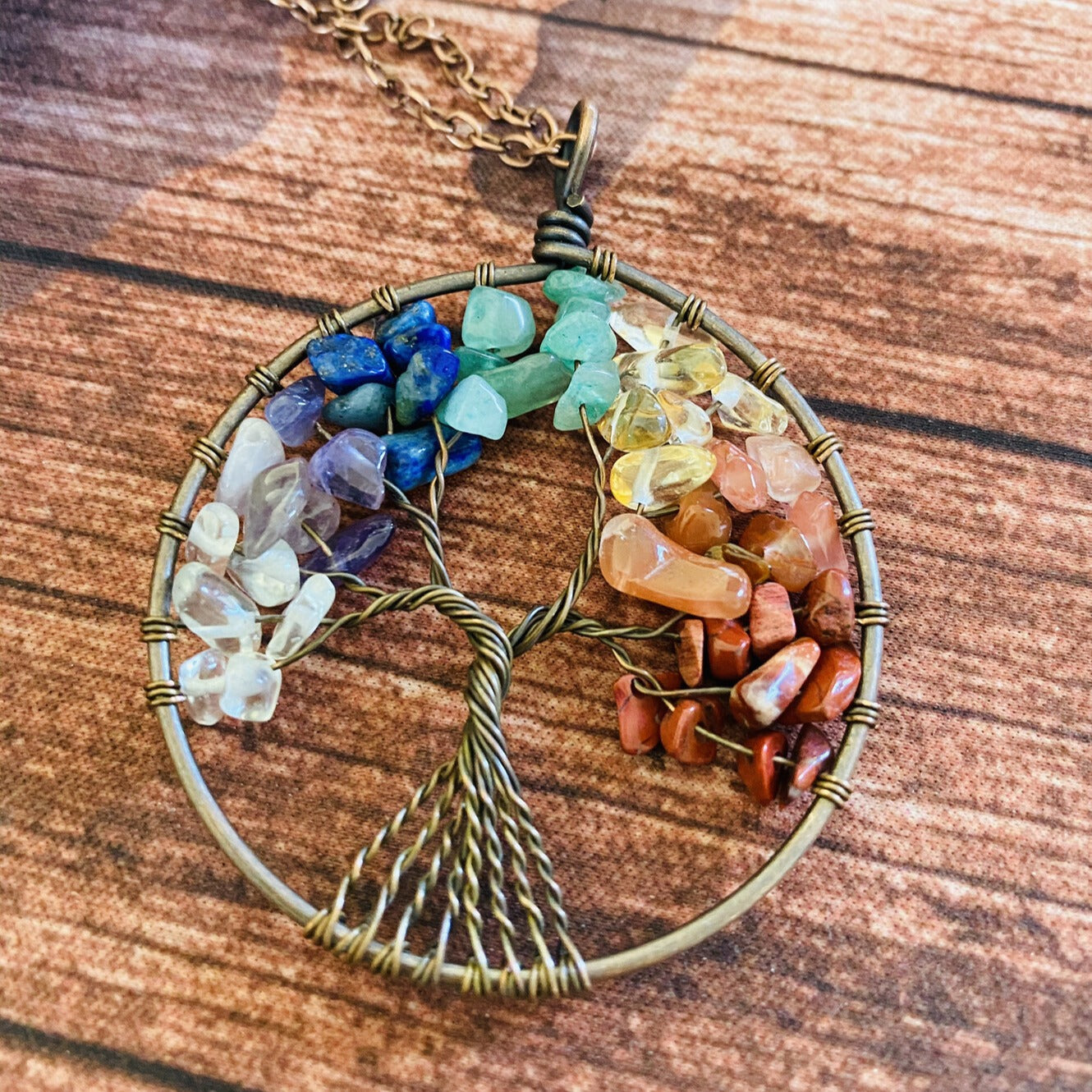 Colar em cobre e pedras naturais com as 7 cores do Chakra